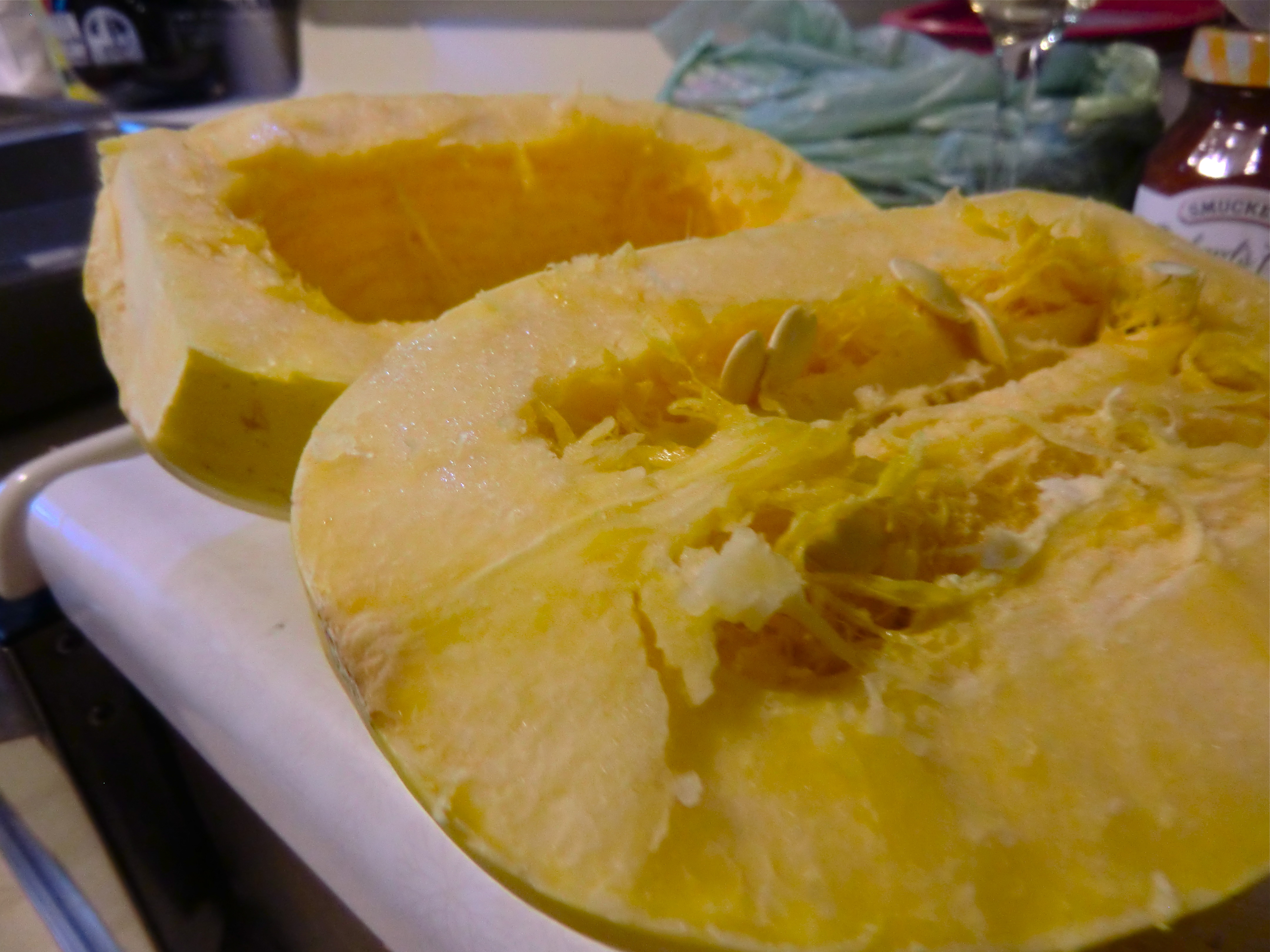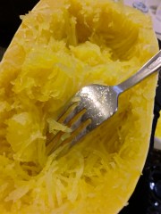 1 medium-sized spaghetti squash, sliced in half, seeds removed