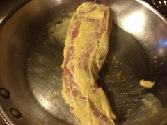 2. Combine 1 Tbsp mustard and pepper in a small bowl; using a cooking brush (looks like a small paint brush), spread all over pork.