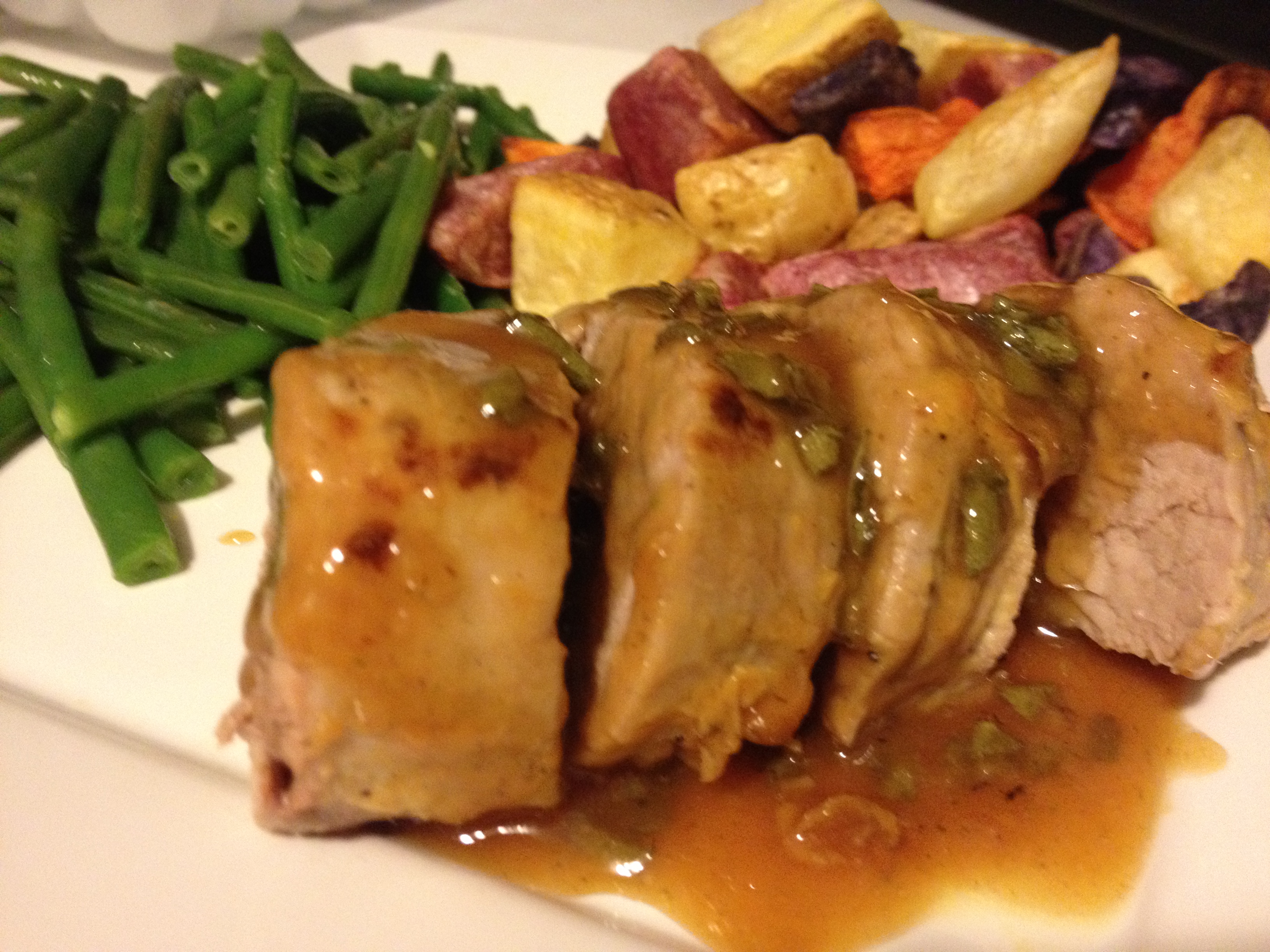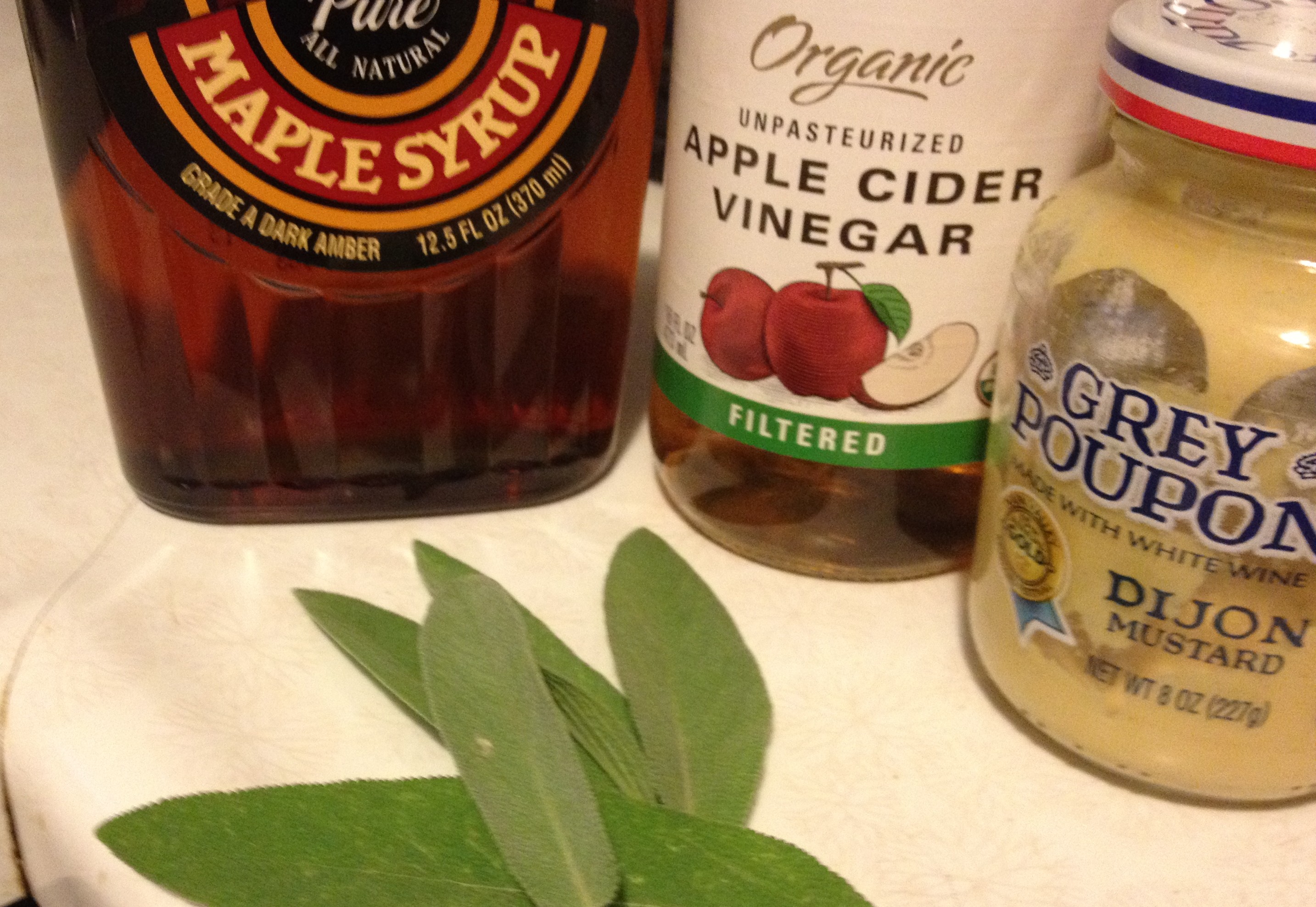 This is a standby recipe in my kitchen and is great whether you’re cooking for one, two, or ten. Pork tenderloin is about the leanest meat you can find, making it a great healthy option for meat lovers. Don’t worry, healthy is not bland; this dish is bursting with flavor and, not to mention, easy to craft! Tender pork is coated with spicy Dijon mustard then baked to perfection before being topped with a molasses-like sauce of tart apple cider vinegar, sweet maple syrup, and a touch of herbal sage. Be sure not to overcook, as pork can quickly dry out and become tough to chew.