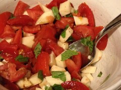 This simple salad, which originally hails from the Italian region of Campana, is a staple for summer, especially if you have a garden. Fresh-plucked tomatoes cannot compare to store-bought, and the same goes for basil. The sweet juice from ruby-red tomatoes is complemented by generous chunks of mozzarella, fresh basil leaves, olive oil and a dash of balsamic vinegar for bite. Preparing this dish ahead of time not only allows you to focus on your main dish, but also allows all the ingredients to meld together, resulting in a more flavorful salad. Chop the tomatoes for a more casual side dish (see below) or if big tomatoes like beefsteak are available, slice into full round chunks, top with a circle of mozzarella, a leaf of basil, drizzle of oil and vinegar, and dash of salt and pepper.