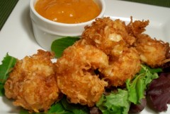 This dish is baked making it low-fat and healthier than its fried counterpart, but not lacking any of the flavor. Succulent shrimp are coated with a light batter and topped with a sweet crunch of coconut. Choose from a sweet chutney-style dipping sauce or a smokey chipotle mayo to give your taste buds a kick. Serve when the weather is warm to bring a taste of the tropics to your own backyard.