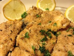 This spin on classic chicken piccata is lower in fat as the chicken is trimmed, pounded, then lightly-breaded, and leaves out the capers to reduce sodium content (feel free to add capers if you like). Lemon should be the most prominent flavor (and smell) in this dish, aside from a slight kick from Dijon mustard. Paired with your favorite glass of Chardonnay, this lemon chicken is perfect for an al fresco summer dinner-for-two or an easy get-together with family and friends. Serve garnished with lemon slices and a sprinkle of fresh parsley – buon appetito!